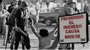 Cartel de restricción en un sector vinculado a la causa 8008. La investigación judicial permitió reconstruir el circuito de detenciones ilegales y tormentos ocurridos en Pico Truncado en 1976, cuyos hechos fueron acreditados en el juicio oral.