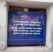 «Intendentes, diríjanse a quien corresponda. Si su gobernador no sabe administrar, que se deje paso a quienes saben», decía un cartel enorme con letras blancas y un fondo azul ubicado en uno de los accesos a la cartera.